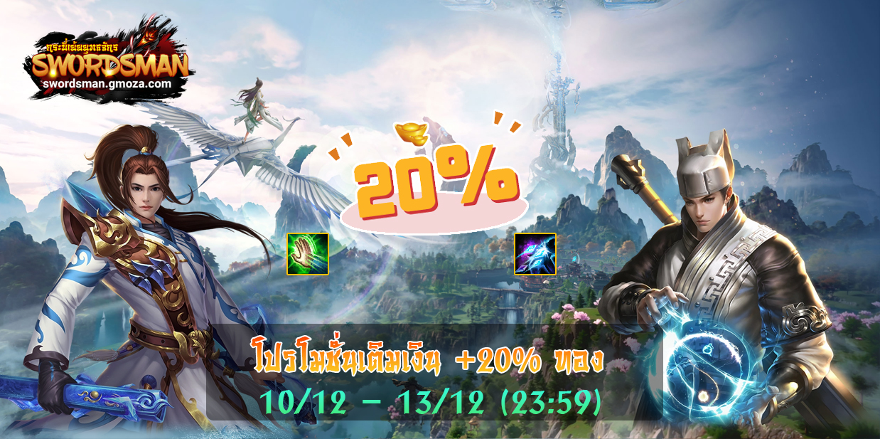 [Promotion] โปรโมชั่นเติมเงิน รับเพิ่ม 20% ทอง (ระหว่าง 10 - 13 ธันวาคม 2567)
