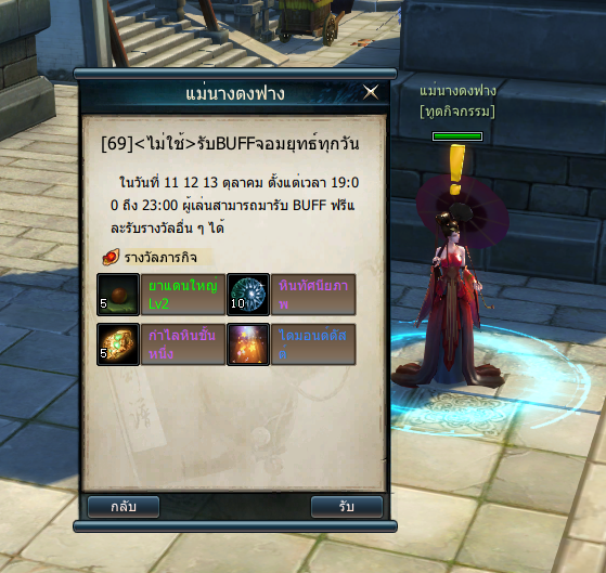 ในวันที่ 11 12 13 ตุลาคม ผู้เล่นที่มีเลเวลเกิน 30 สามารถไปที่ NPC ในเมืองฝูโจว เพื่อรับรางวัล