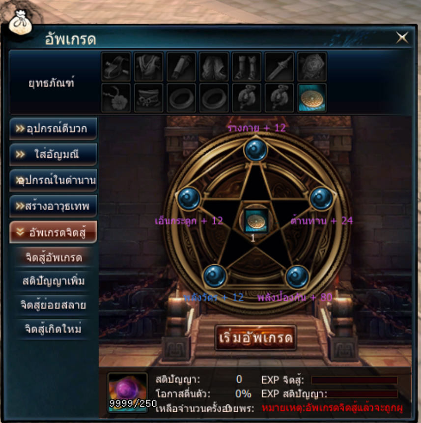 ระบบแกร่งจิต เป็นอุปกรณ์สำคัญที่ไม่สามารถขาดได้ในการเพิ่มสเตตัสให้กับตัวละครและมีประโยชน์ในการ PK เป็นอย่างมาก