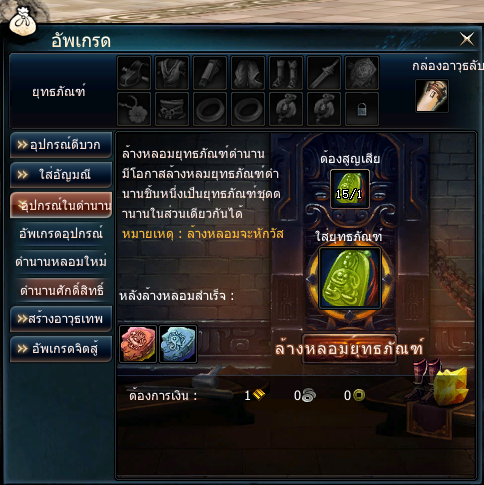 ยันต์เครื่องแก้ว เลเวล 55 , สามารถอัพเกรดเป็นเลเวลที่สูงขึ้นได้ , สามารถรีเซ็ตออฟชั่นได้ |