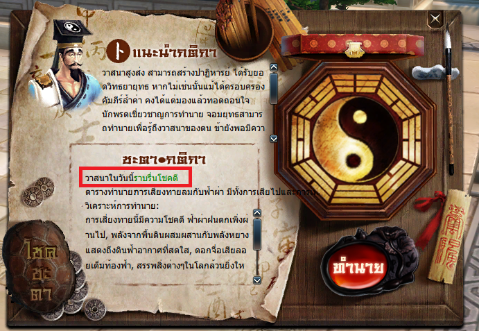 และไปหา NPC พยากรณ์วาสนา (เมืองลั่วหยาง 736, 92) เพื่อสุ่มดวง หากดวงตรงกับที่กำหนดแล้ว สามารถเริ่มเควสเจียงหูได้เลย (จำกัดการสุ่มดวงฟรี 3 ครั้งต่อวัน)