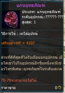 - หลังจากใส่แก่นยุทธภัณฑ์แล้ว ออฟชั่นจะใช้ได้ 15 วัน