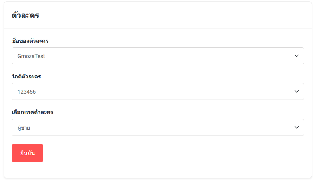 2. ยืนยันชื่อตัวละครและเพศของตัวละครสำหรับรับรางวัล